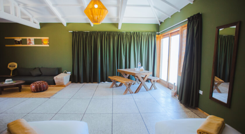 Description : The chalets have a balcony. All are equipped with a desk and a private bathroom. 3 beds (2 sofa beds, 1 large double bed)